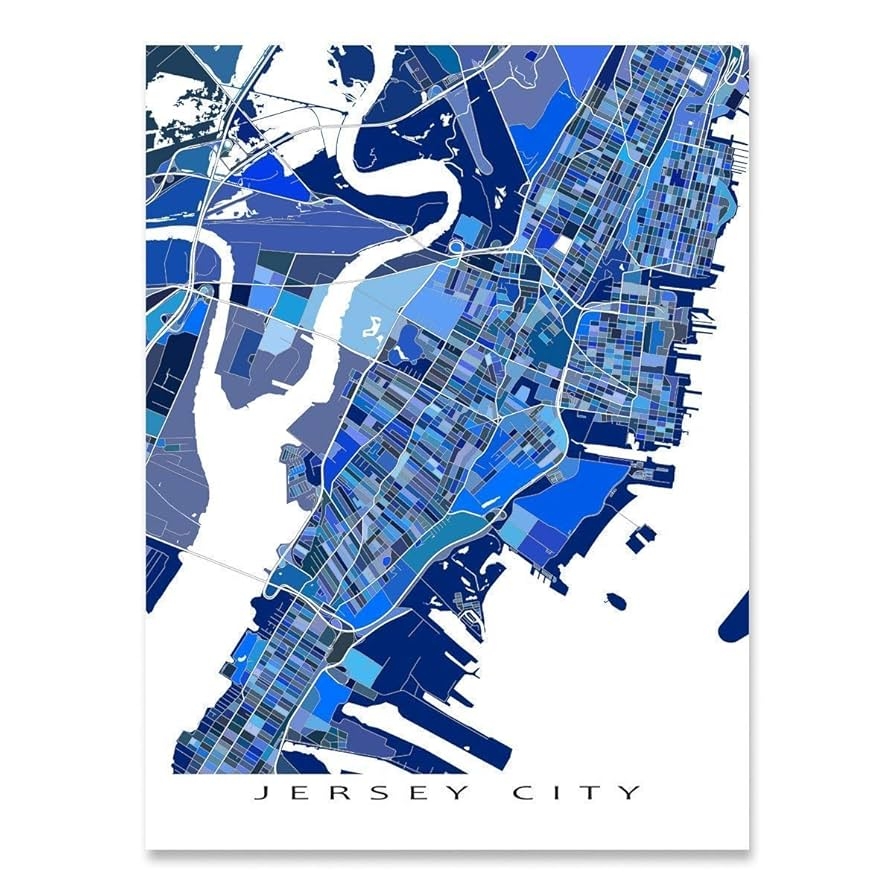 Amazon Jersey City Map Print 8×10 Map Of Jersey City NJ Poster 24×36 Handmade Blue Geometric Jersey City New Jersey Art Prints Jersey City Gifts By Maps As Art Home U0026