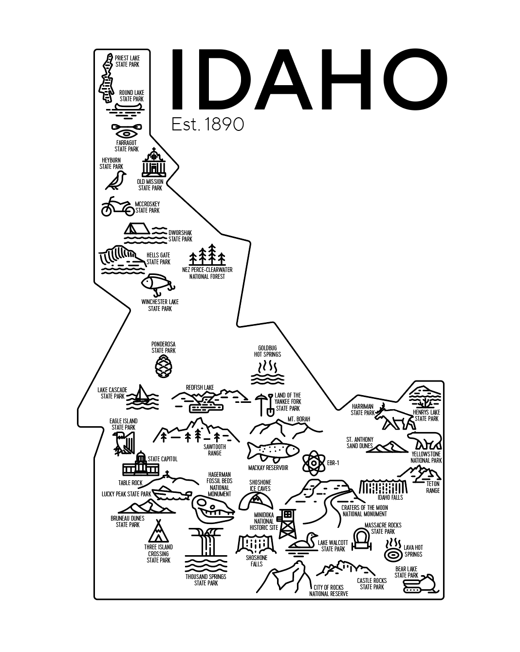 Idaho Map Art Print 8×10