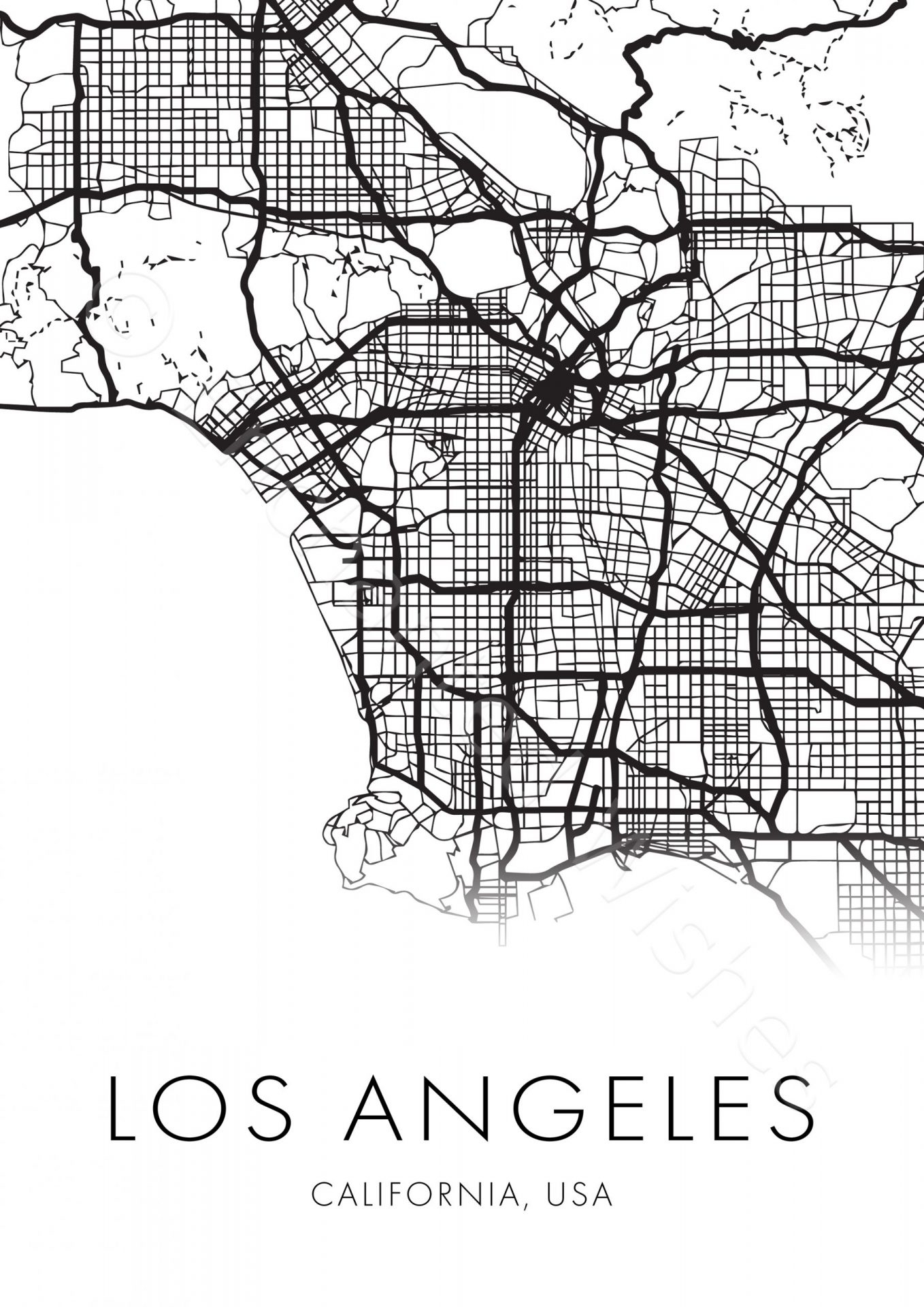 Large Los Angeles City Map Print Wall Art Printable Prints