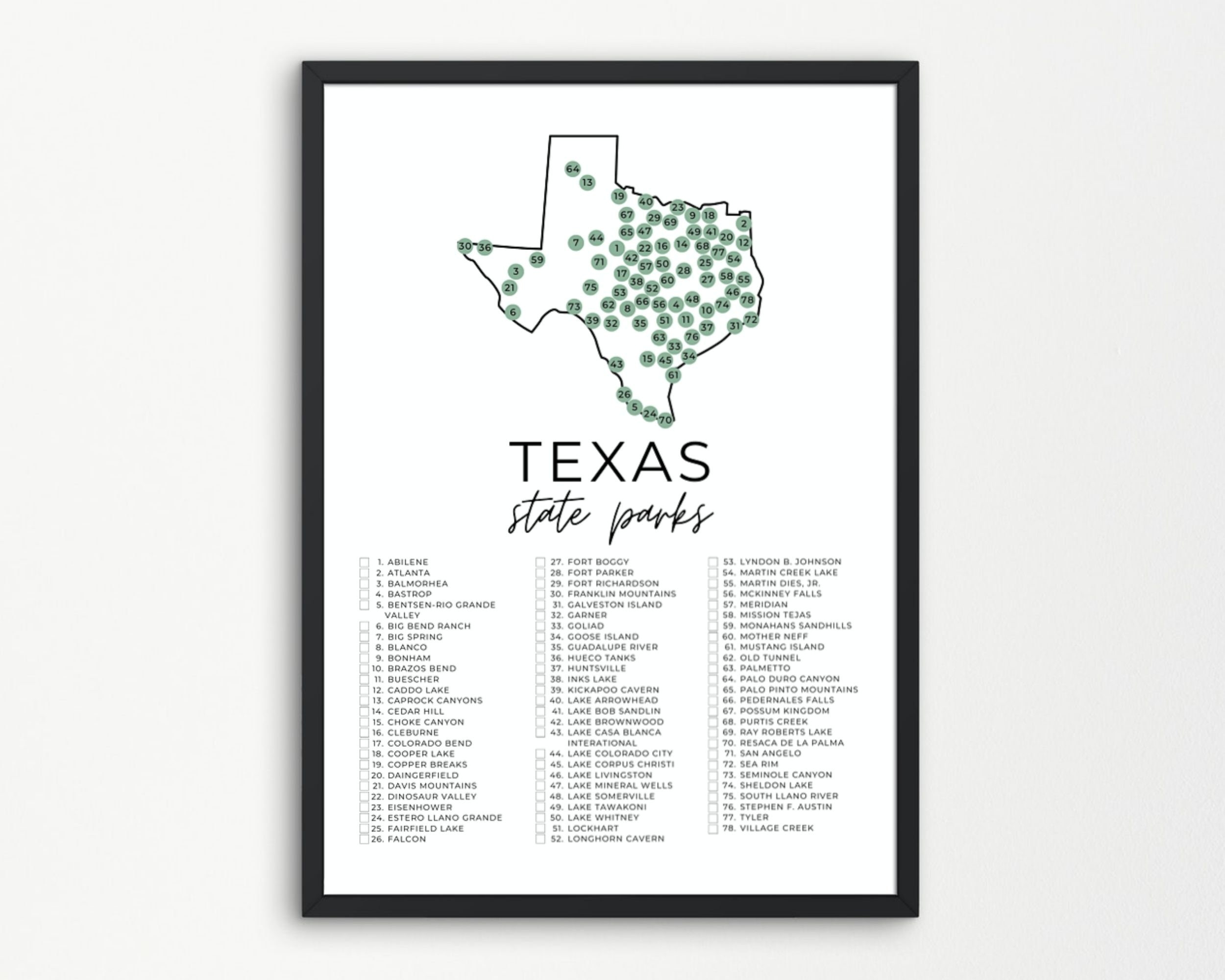 Texas State Park Map Printable State Park Checklist State Parks Check Off State Park Printables A4 US Letter Etsy