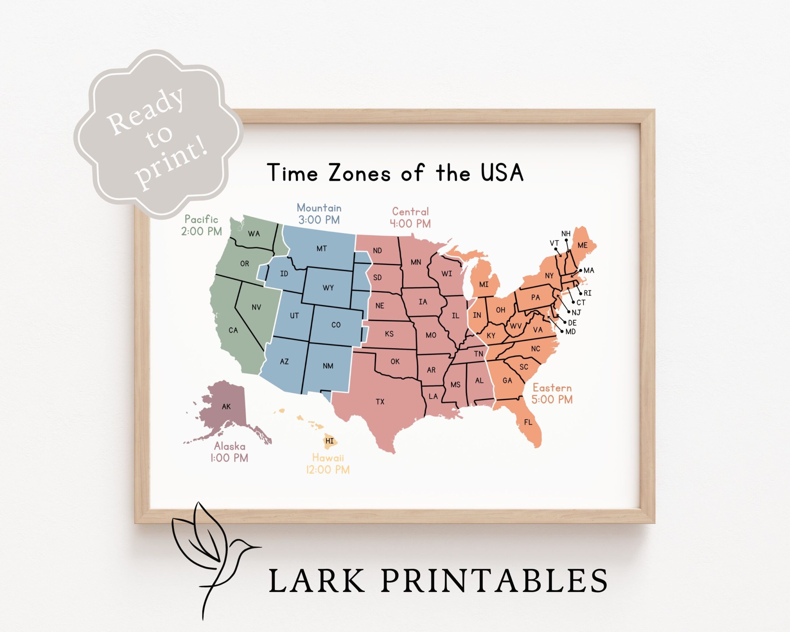 Time Zones Of The USA Map Educational Poster Printable Geography Classroom Wall Decor Montessori Homeschool Resource Time Zone United States Etsy